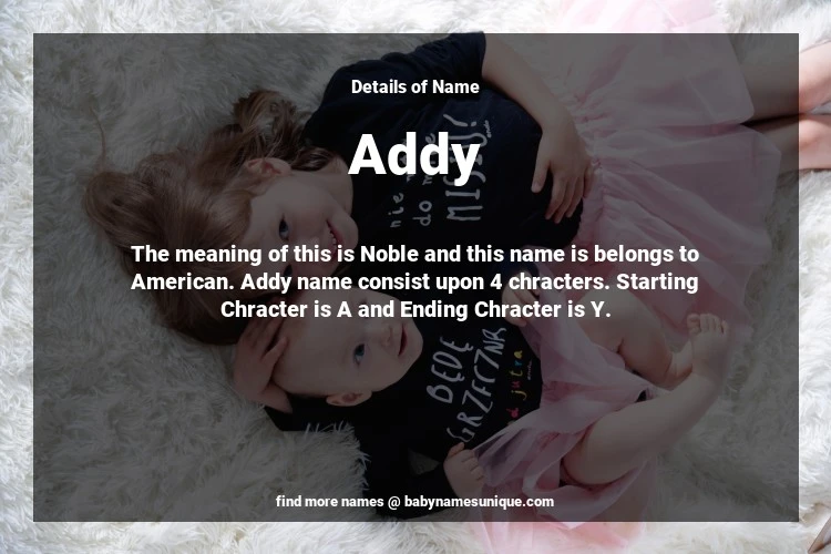The name Addy is chosen by those who are willing to find Unique Transgenders Baby Names. The meaning of this is Noble and this name is belongs to American Origin. Baby Name Addy consist upon 4 chracters. Starting alphabet is A and ending alphabet is Y. This name is used primarily by parents who are considering unique baby names for Transgenders. The Zodiac Sign suitbale for this name are;