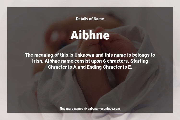 The name Aibhne is chosen by those who are willing to find Unique Transgenders Baby Names. The meaning of this is Unknown and this name is belongs to Irish Origin. Baby Name Aibhne consist upon 6 chracters. Starting alphabet is A and ending alphabet is E. This name is used primarily by parents who are considering unique baby names for Transgenders. The Zodiac Sign suitbale for this name are;