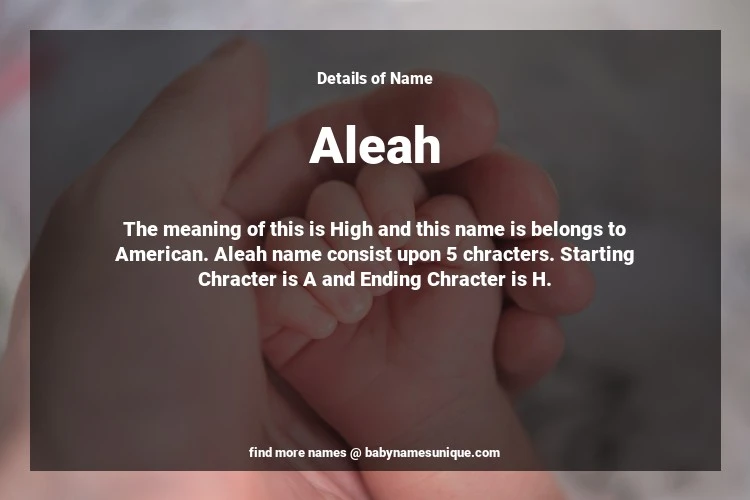 The name Aleah is chosen by those who are willing to find Unique Transgenders Baby Names. The meaning of this is High and this name is belongs to American Origin. Baby Name Aleah consist upon 5 chracters. Starting alphabet is A and ending alphabet is H. This name is used primarily by parents who are considering unique baby names for Transgenders. The Zodiac Sign suitbale for this name are;