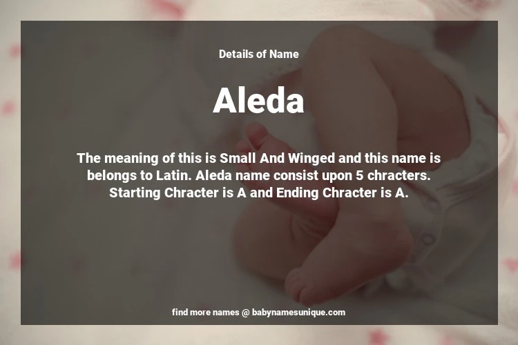 The name Aleda is chosen by those who are willing to find Unique Transgenders Baby Names. The meaning of this is Small And Winged and this name is belongs to Latin Origin. Baby Name Aleda consist upon 5 chracters. Starting alphabet is A and ending alphabet is A. This name is used primarily by parents who are considering unique baby names for Transgenders. The Zodiac Sign suitbale for this name are;