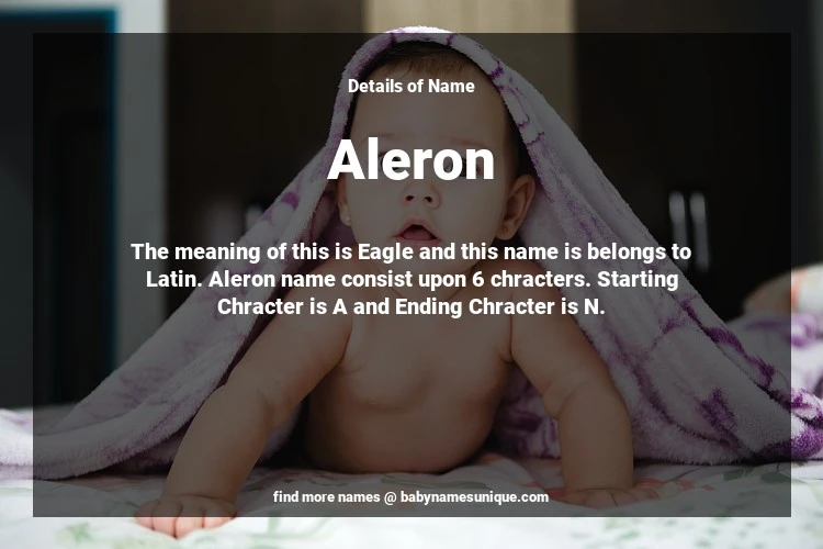 The name Aleron is chosen by those who are willing to find Unique Boy Baby Names. The meaning of this is Eagle and this name is belongs to Latin Origin. Baby Name Aleron consist upon 6 chracters. Starting alphabet is A and ending alphabet is N. This name is used primarily by parents who are considering unique baby names for Boy. The Zodiac Sign suitbale for this name are;