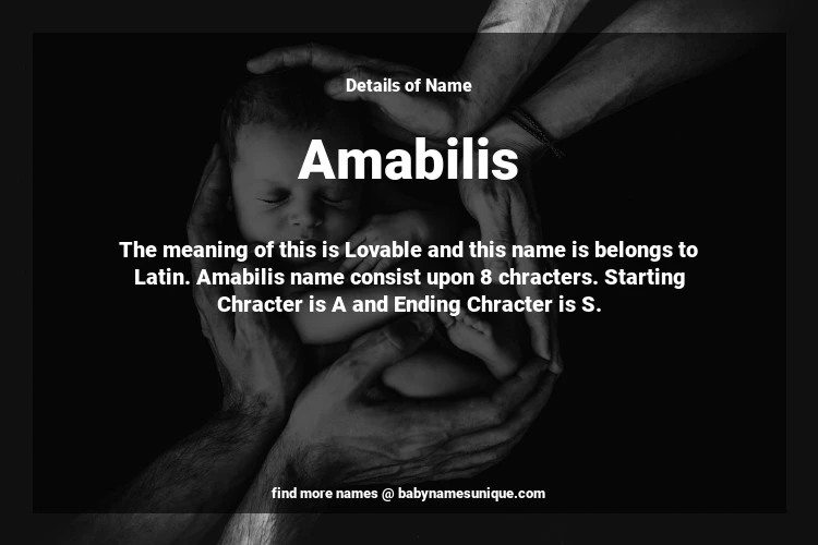 The name Amabilis is chosen by those who are willing to find Unique Transgenders Baby Names. The meaning of this is Lovable and this name is belongs to Latin Origin. Baby Name Amabilis consist upon 8 chracters. Starting alphabet is A and ending alphabet is S. This name is used primarily by parents who are considering unique baby names for Transgenders. The Zodiac Sign suitbale for this name are;