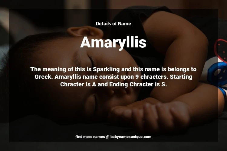 The name Amaryllis is chosen by those who are willing to find Unique Transgenders Baby Names. The meaning of this is Sparkling and this name is belongs to Greek Origin. Baby Name Amaryllis consist upon 9 chracters. Starting alphabet is A and ending alphabet is S. This name is used primarily by parents who are considering unique baby names for Transgenders. The Zodiac Sign suitbale for this name are;
