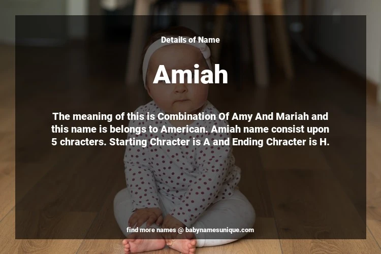 The name Amiah is chosen by those who are willing to find Unique Transgenders Baby Names. The meaning of this is Combination Of Amy And Mariah and this name is belongs to American Origin. Baby Name Amiah consist upon 5 chracters. Starting alphabet is A and ending alphabet is H. This name is used primarily by parents who are considering unique baby names for Transgenders. The Zodiac Sign suitbale for this name are;