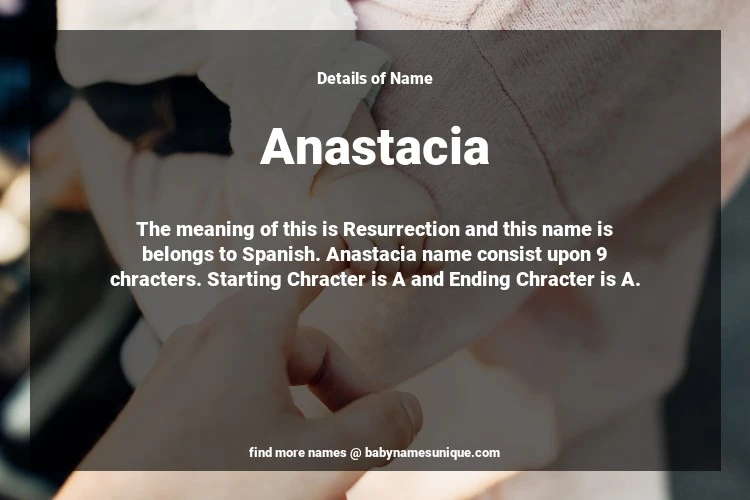 The name Anastacia is chosen by those who are willing to find Unique Transgenders Baby Names. The meaning of this is Resurrection and this name is belongs to Spanish Origin. Baby Name Anastacia consist upon 9 chracters. Starting alphabet is A and ending alphabet is A. This name is used primarily by parents who are considering unique baby names for Transgenders. The Zodiac Sign suitbale for this name are;