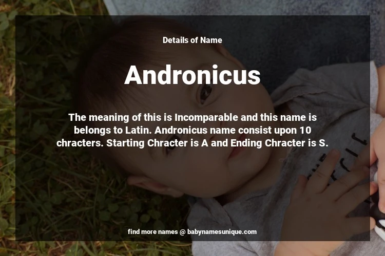 The name Andronicus is chosen by those who are willing to find Unique Boy Baby Names. The meaning of this is Incomparable and this name is belongs to Latin Origin. Baby Name Andronicus consist upon 10 chracters. Starting alphabet is A and ending alphabet is S. This name is used primarily by parents who are considering unique baby names for Boy. The Zodiac Sign suitbale for this name are;