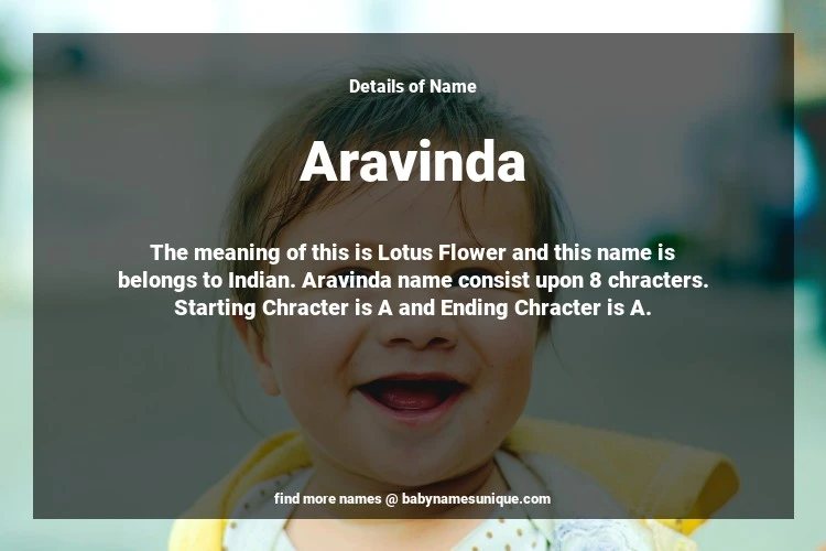 The name Aravinda is chosen by those who are willing to find Unique Transgenders Baby Names. The meaning of this is Lotus Flower and this name is belongs to Indian Origin. Baby Name Aravinda consist upon 8 chracters. Starting alphabet is A and ending alphabet is A. This name is used primarily by parents who are considering unique baby names for Transgenders. The Zodiac Sign suitbale for this name are;