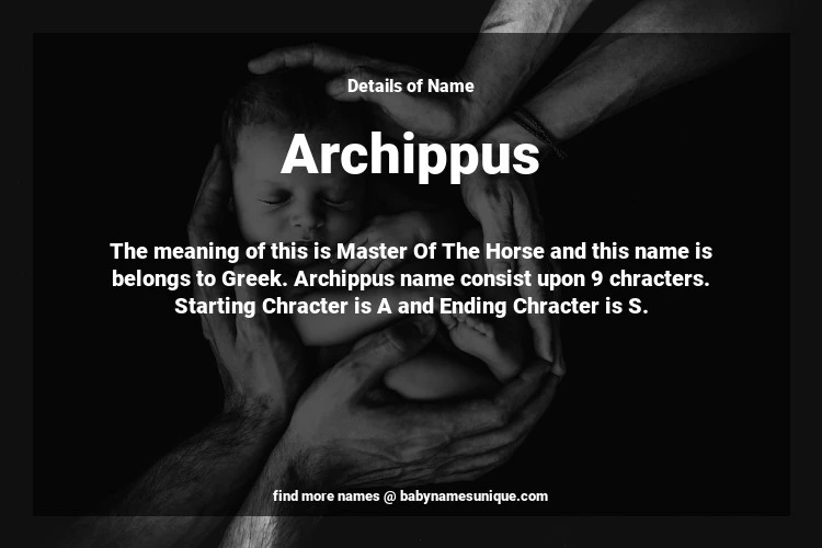 The name Archippus is chosen by those who are willing to find Unique Boy Baby Names. The meaning of this is Master Of The Horse and this name is belongs to Greek Origin. Baby Name Archippus consist upon 9 chracters. Starting alphabet is A and ending alphabet is S. This name is used primarily by parents who are considering unique baby names for Boy. The Zodiac Sign suitbale for this name are;