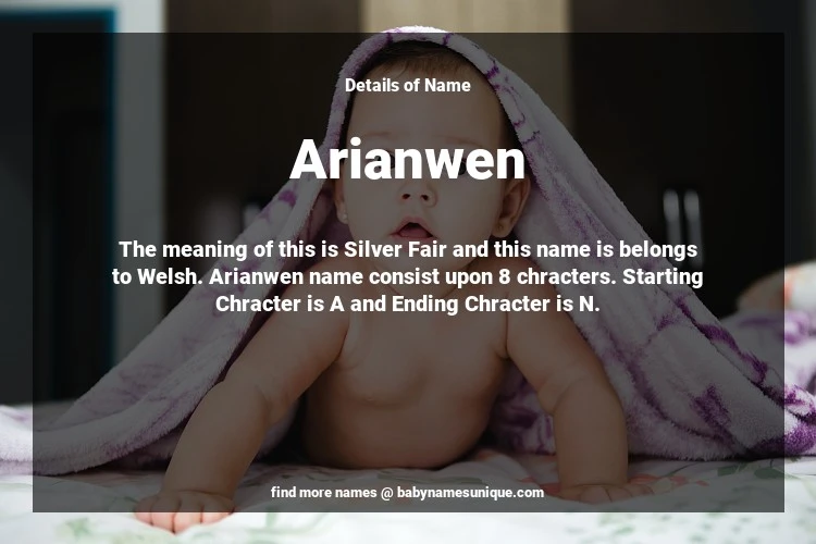The name Arianwen is chosen by those who are willing to find Unique Transgenders Baby Names. The meaning of this is Silver Fair and this name is belongs to Welsh Origin. Baby Name Arianwen consist upon 8 chracters. Starting alphabet is A and ending alphabet is N. This name is used primarily by parents who are considering unique baby names for Transgenders. The Zodiac Sign suitbale for this name are;
