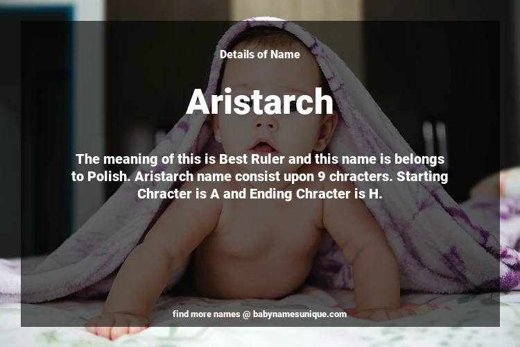 The name Aristarch is chosen by those who are willing to find Unique Boy Baby Names. The meaning of this is Best Ruler and this name is belongs to Polish Origin. Baby Name Aristarch consist upon 9 chracters. Starting alphabet is A and ending alphabet is H. This name is used primarily by parents who are considering unique baby names for Boy. The Zodiac Sign suitbale for this name are;