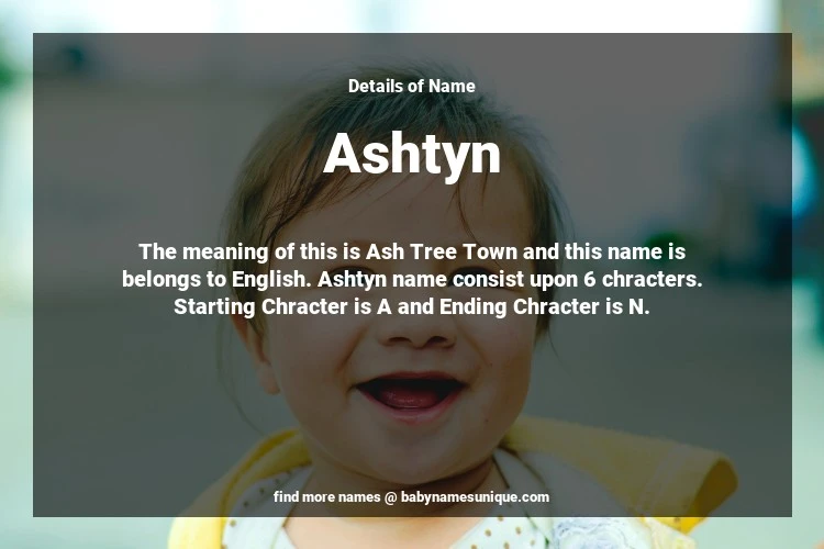 The name Ashtyn is chosen by those who are willing to find Unique Transgenders Baby Names. The meaning of this is Ash Tree Town and this name is belongs to English Origin. Baby Name Ashtyn consist upon 6 chracters. Starting alphabet is A and ending alphabet is N. This name is used primarily by parents who are considering unique baby names for Transgenders. The Zodiac Sign suitbale for this name are;