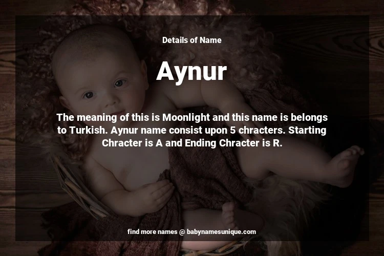 The name Aynur is chosen by those who are willing to find Unique Transgenders Baby Names. The meaning of this is Moonlight and this name is belongs to Turkish Origin. Baby Name Aynur consist upon 5 chracters. Starting alphabet is A and ending alphabet is R. This name is used primarily by parents who are considering unique baby names for Transgenders. The Zodiac Sign suitbale for this name are;