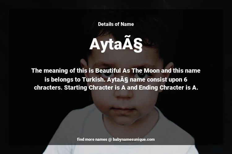 The name Aytaç is chosen by those who are willing to find Unique Transgenders Baby Names. The meaning of this is Beautiful As The Moon and this name is belongs to Turkish Origin. Baby Name Aytaç consist upon 6 chracters. Starting alphabet is A and ending alphabet is A. This name is used primarily by parents who are considering unique baby names for Transgenders. The Zodiac Sign suitbale for this name are;
