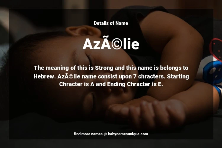 The name Azélie is chosen by those who are willing to find Unique Boy Baby Names. The meaning of this is Strong and this name is belongs to Hebrew Origin. Baby Name Azélie consist upon 7 chracters. Starting alphabet is A and ending alphabet is E. This name is used primarily by parents who are considering unique baby names for Boy. The Zodiac Sign suitbale for this name are;