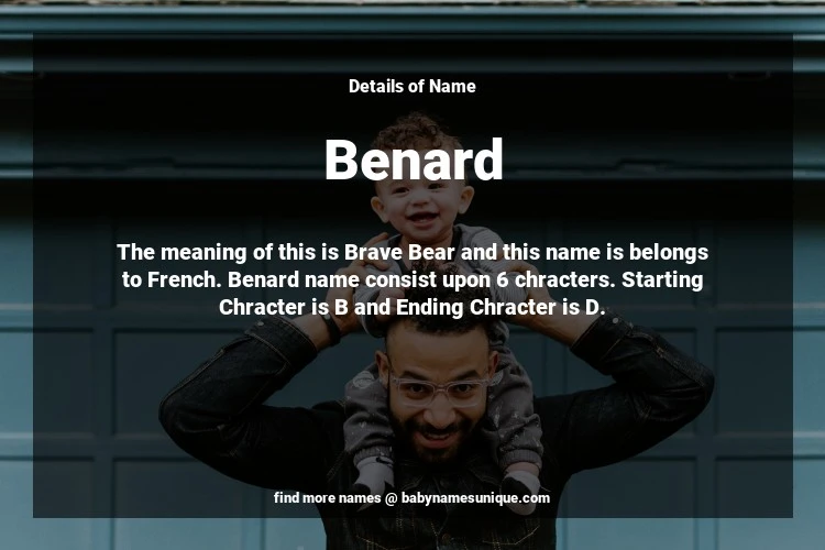 The name Benard is chosen by those who are willing to find Unique Boy Baby Names. The meaning of this is Brave Bear and this name is belongs to French Origin. Baby Name Benard consist upon 6 chracters. Starting alphabet is B and ending alphabet is D. This name is used primarily by parents who are considering unique baby names for Boy. The Zodiac Sign suitbale for this name are;