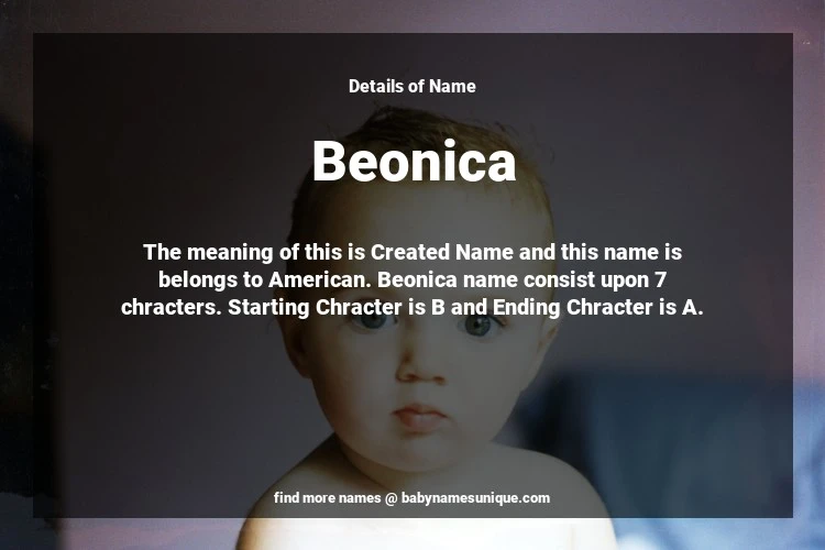 The name Beonica is chosen by those who are willing to find Unique Transgenders Baby Names. The meaning of this is Created Name and this name is belongs to American Origin. Baby Name Beonica consist upon 7 chracters. Starting alphabet is B and ending alphabet is A. This name is used primarily by parents who are considering unique baby names for Transgenders. The Zodiac Sign suitbale for this name are;