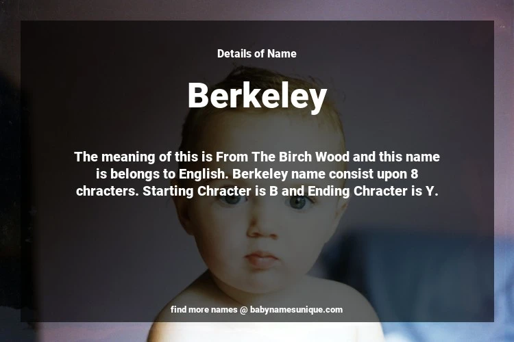 The name Berkeley is chosen by those who are willing to find Unique Transgenders Baby Names. The meaning of this is From The Birch Wood and this name is belongs to English Origin. Baby Name Berkeley consist upon 8 chracters. Starting alphabet is B and ending alphabet is Y. This name is used primarily by parents who are considering unique baby names for Transgenders. The Zodiac Sign suitbale for this name are;