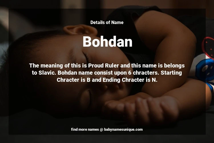 The name Bohdan is chosen by those who are willing to find Unique Boy Baby Names. The meaning of this is Proud Ruler and this name is belongs to Slavic Origin. Baby Name Bohdan consist upon 6 chracters. Starting alphabet is B and ending alphabet is N. This name is used primarily by parents who are considering unique baby names for Boy. The Zodiac Sign suitbale for this name are;