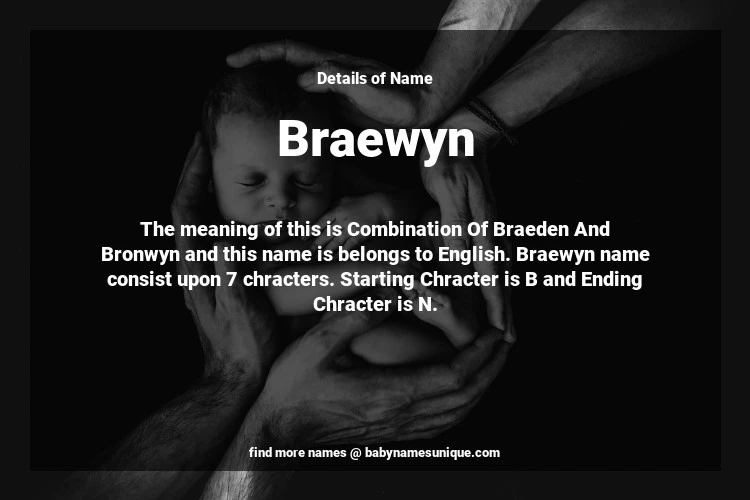 The name Braewyn is chosen by those who are willing to find Unique Transgenders Baby Names. The meaning of this is Combination Of Braeden And Bronwyn and this name is belongs to English Origin. Baby Name Braewyn consist upon 7 chracters. Starting alphabet is B and ending alphabet is N. This name is used primarily by parents who are considering unique baby names for Transgenders. The Zodiac Sign suitbale for this name are;