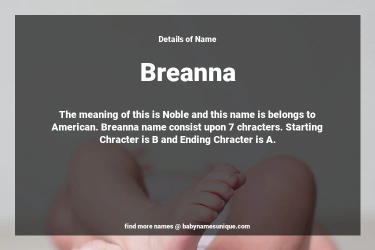 The name Breanna is chosen by those who are willing to find Unique Transgenders Baby Names. The meaning of this is Noble and this name is belongs to American Origin. Baby Name Breanna consist upon 7 chracters. Starting alphabet is B and ending alphabet is A. This name is used primarily by parents who are considering unique baby names for Transgenders. The Zodiac Sign suitbale for this name are;
