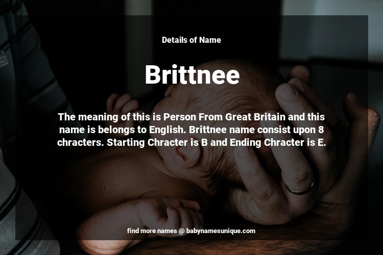 The name Brittnee is chosen by those who are willing to find Unique Transgenders Baby Names. The meaning of this is Person From Great Britain and this name is belongs to English Origin. Baby Name Brittnee consist upon 8 chracters. Starting alphabet is B and ending alphabet is E. This name is used primarily by parents who are considering unique baby names for Transgenders. The Zodiac Sign suitbale for this name are;