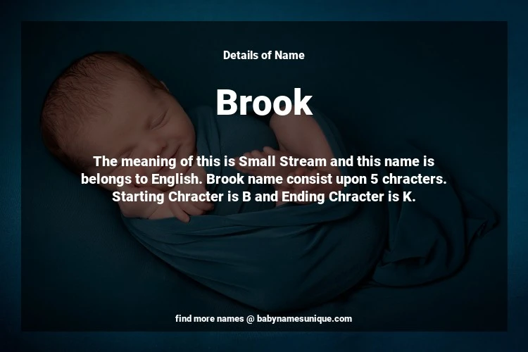 The name Brook is chosen by those who are willing to find Unique Transgenders Baby Names. The meaning of this is Small Stream and this name is belongs to English Origin. Baby Name Brook consist upon 5 chracters. Starting alphabet is B and ending alphabet is K. This name is used primarily by parents who are considering unique baby names for Transgenders. The Zodiac Sign suitbale for this name are;