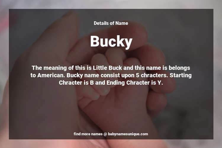 The name Bucky is chosen by those who are willing to find Unique Boy Baby Names. The meaning of this is Little Buck and this name is belongs to American Origin. Baby Name Bucky consist upon 5 chracters. Starting alphabet is B and ending alphabet is Y. This name is used primarily by parents who are considering unique baby names for Boy. The Zodiac Sign suitbale for this name are;