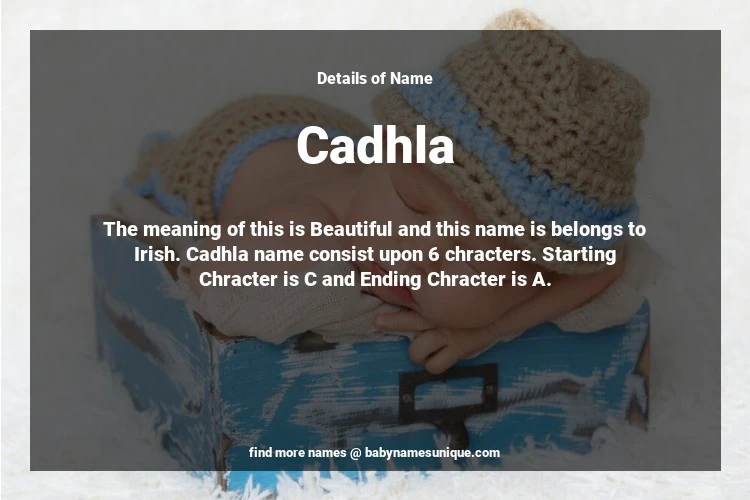 The name Cadhla is chosen by those who are willing to find Unique Transgenders Baby Names. The meaning of this is Beautiful and this name is belongs to Irish Origin. Baby Name Cadhla consist upon 6 chracters. Starting alphabet is C and ending alphabet is A. This name is used primarily by parents who are considering unique baby names for Transgenders. The Zodiac Sign suitbale for this name are;