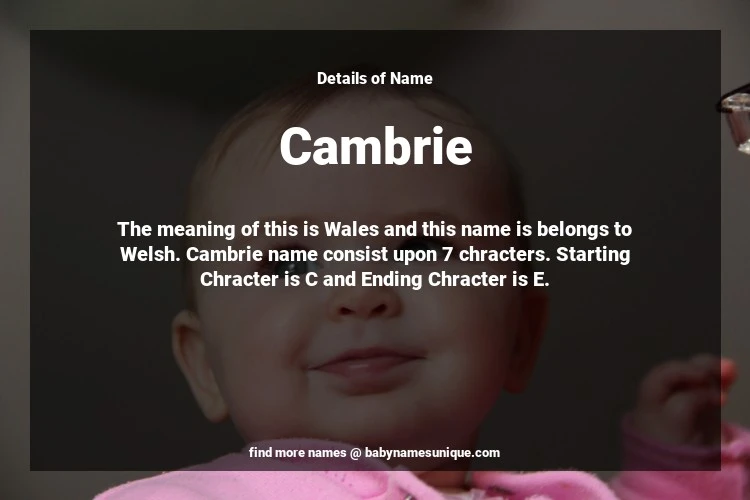 The name Cambrie is chosen by those who are willing to find Unique Transgenders Baby Names. The meaning of this is Wales and this name is belongs to Welsh Origin. Baby Name Cambrie consist upon 7 chracters. Starting alphabet is C and ending alphabet is E. This name is used primarily by parents who are considering unique baby names for Transgenders. The Zodiac Sign suitbale for this name are;