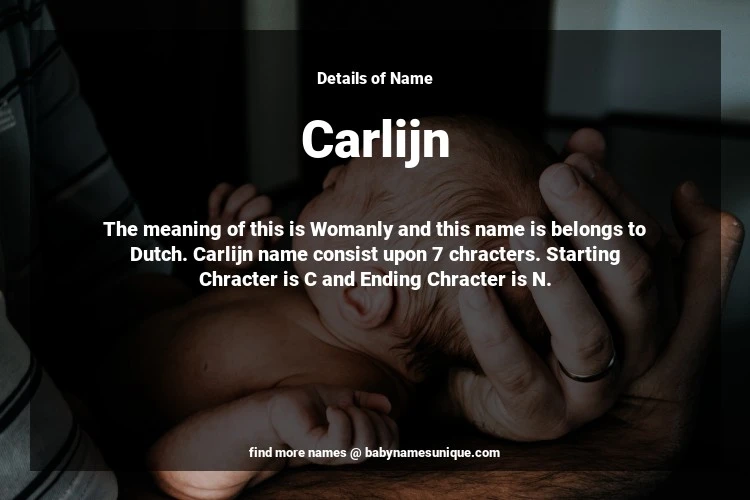 The name Carlijn is chosen by those who are willing to find Unique Transgenders Baby Names. The meaning of this is Womanly and this name is belongs to Dutch Origin. Baby Name Carlijn consist upon 7 chracters. Starting alphabet is C and ending alphabet is N. This name is used primarily by parents who are considering unique baby names for Transgenders. The Zodiac Sign suitbale for this name are;