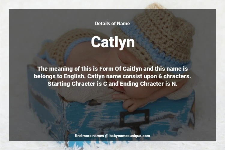 The name Catlyn is chosen by those who are willing to find Unique Transgenders Baby Names. The meaning of this is Form Of Caitlyn and this name is belongs to English Origin. Baby Name Catlyn consist upon 6 chracters. Starting alphabet is C and ending alphabet is N. This name is used primarily by parents who are considering unique baby names for Transgenders. The Zodiac Sign suitbale for this name are;