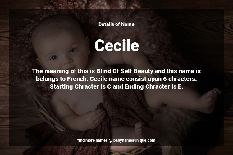 The name Cecile is chosen by those who are willing to find Unique Transgenders Baby Names. The meaning of this is Blind Of Self Beauty and this name is belongs to French Origin. Baby Name Cecile consist upon 6 chracters. Starting alphabet is C and ending alphabet is E. This name is used primarily by parents who are considering unique baby names for Transgenders. The Zodiac Sign suitbale for this name are;
