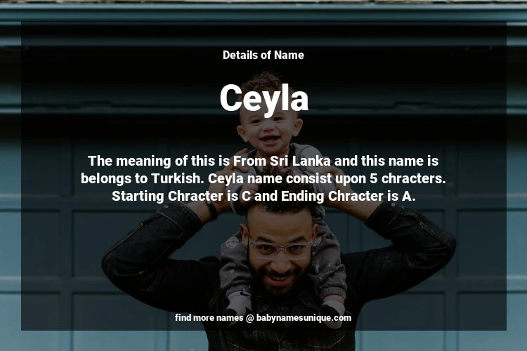 The name Ceyla is chosen by those who are willing to find Unique Transgenders Baby Names. The meaning of this is From Sri Lanka and this name is belongs to Turkish Origin. Baby Name Ceyla consist upon 5 chracters. Starting alphabet is C and ending alphabet is A. This name is used primarily by parents who are considering unique baby names for Transgenders. The Zodiac Sign suitbale for this name are;