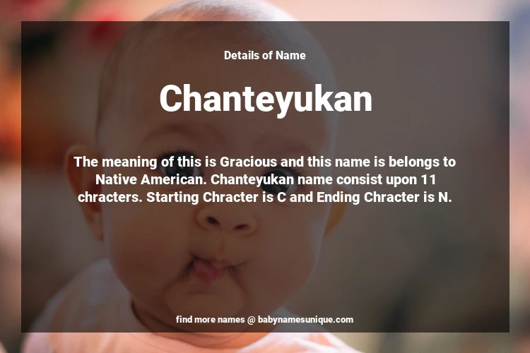 The name Chanteyukan is chosen by those who are willing to find Unique Transgenders Baby Names. The meaning of this is Gracious and this name is belongs to Native American Origin. Baby Name Chanteyukan consist upon 11 chracters. Starting alphabet is C and ending alphabet is N. This name is used primarily by parents who are considering unique baby names for Transgenders. The Zodiac Sign suitbale for this name are;