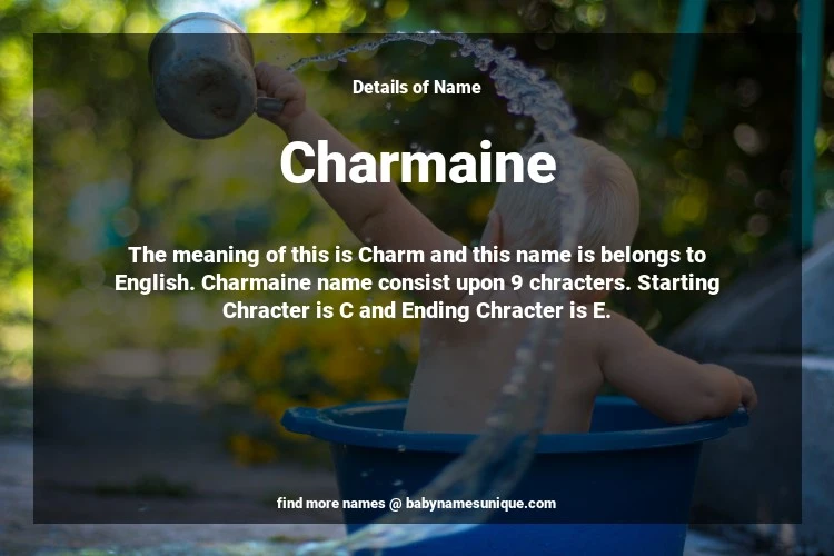 The name Charmaine is chosen by those who are willing to find Unique Transgenders Baby Names. The meaning of this is Charm and this name is belongs to English Origin. Baby Name Charmaine consist upon 9 chracters. Starting alphabet is C and ending alphabet is E. This name is used primarily by parents who are considering unique baby names for Transgenders. The Zodiac Sign suitbale for this name are;