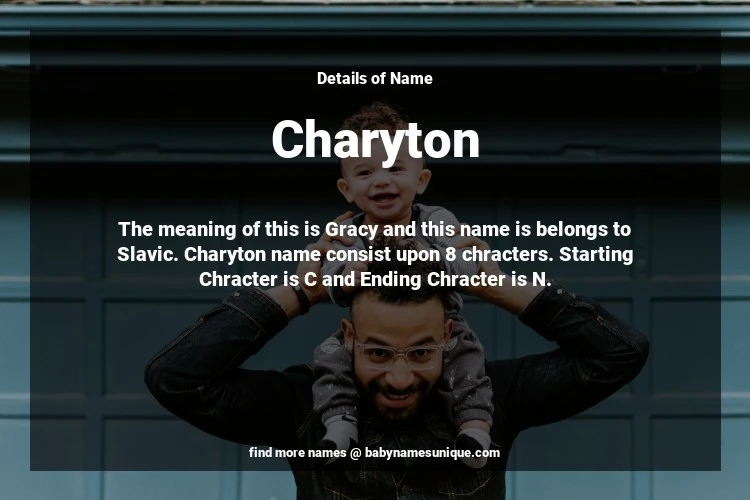 The name Charyton is chosen by those who are willing to find Unique Transgenders Baby Names. The meaning of this is Gracy and this name is belongs to Slavic Origin. Baby Name Charyton consist upon 8 chracters. Starting alphabet is C and ending alphabet is N. This name is used primarily by parents who are considering unique baby names for Transgenders. The Zodiac Sign suitbale for this name are;