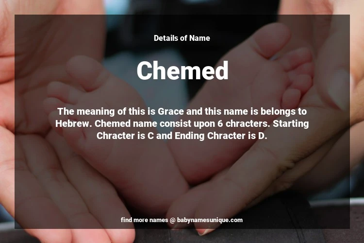The name Chemed is chosen by those who are willing to find Unique Transgenders Baby Names. The meaning of this is Grace and this name is belongs to Hebrew Origin. Baby Name Chemed consist upon 6 chracters. Starting alphabet is C and ending alphabet is D. This name is used primarily by parents who are considering unique baby names for Transgenders. The Zodiac Sign suitbale for this name are;