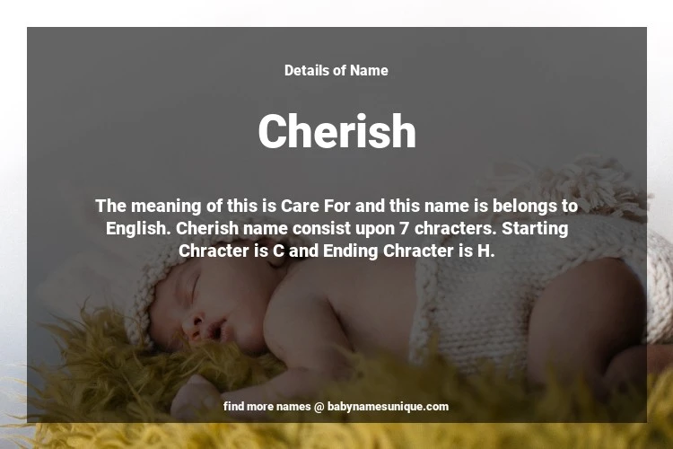 The name Cherish is chosen by those who are willing to find Unique Transgenders Baby Names. The meaning of this is Care For and this name is belongs to English Origin. Baby Name Cherish consist upon 7 chracters. Starting alphabet is C and ending alphabet is H. This name is used primarily by parents who are considering unique baby names for Transgenders. The Zodiac Sign suitbale for this name are;