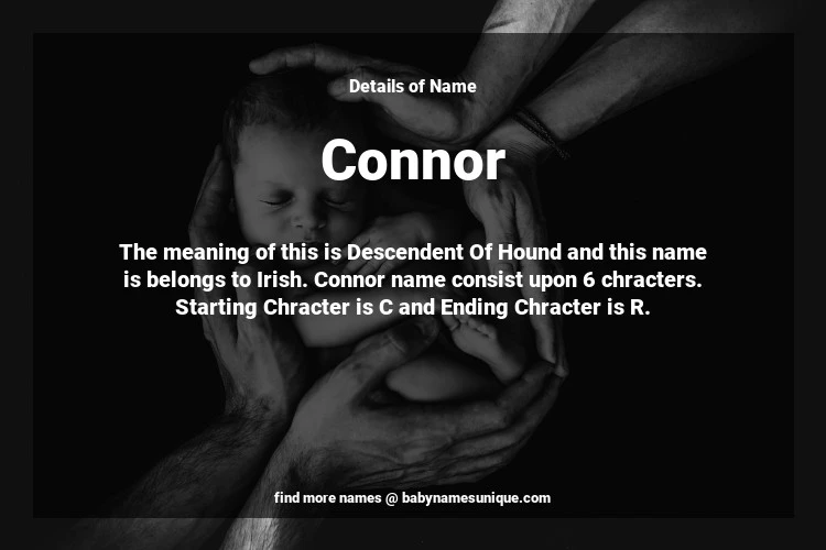 The name Connor is chosen by those who are willing to find Unique Boy Baby Names. The meaning of this is Descendent Of Hound and this name is belongs to Irish Origin. Baby Name Connor consist upon 6 chracters. Starting alphabet is C and ending alphabet is R. This name is used primarily by parents who are considering unique baby names for Boy. The Zodiac Sign suitbale for this name are;