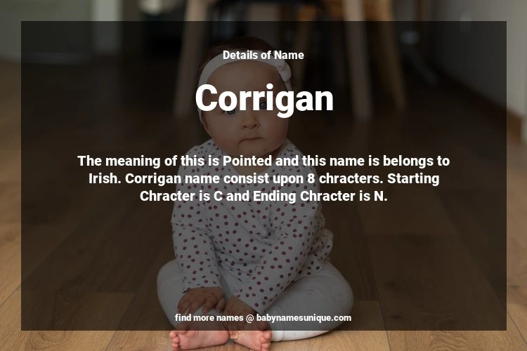 The name Corrigan is chosen by those who are willing to find Unique Transgenders Baby Names. The meaning of this is Pointed and this name is belongs to Irish Origin. Baby Name Corrigan consist upon 8 chracters. Starting alphabet is C and ending alphabet is N. This name is used primarily by parents who are considering unique baby names for Transgenders. The Zodiac Sign suitbale for this name are;