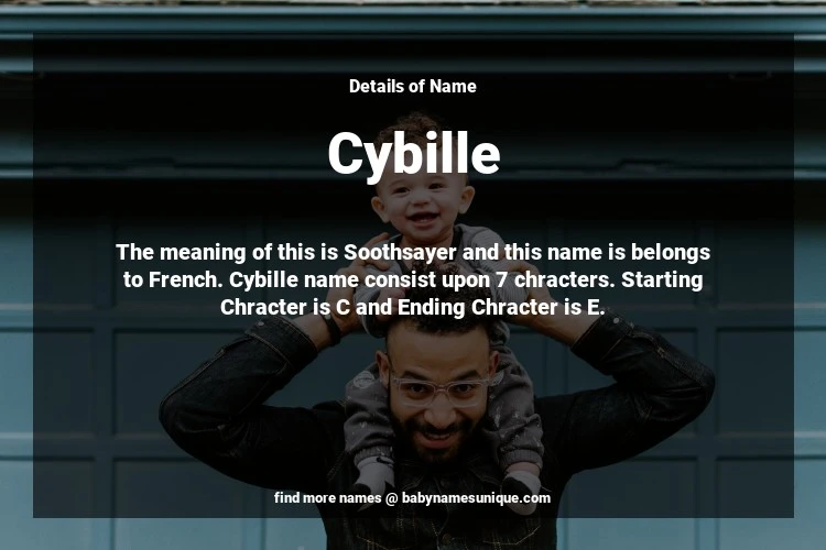 The name Cybille is chosen by those who are willing to find Unique Transgenders Baby Names. The meaning of this is Soothsayer and this name is belongs to French Origin. Baby Name Cybille consist upon 7 chracters. Starting alphabet is C and ending alphabet is E. This name is used primarily by parents who are considering unique baby names for Transgenders. The Zodiac Sign suitbale for this name are;