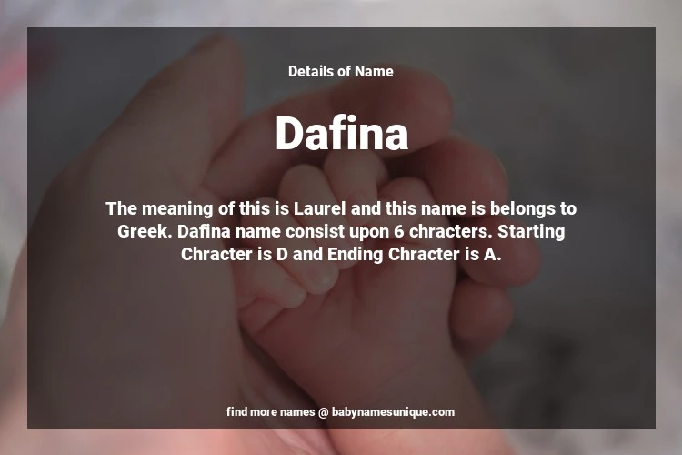 The name Dafina is chosen by those who are willing to find Unique Transgenders Baby Names. The meaning of this is Laurel and this name is belongs to Greek Origin. Baby Name Dafina consist upon 6 chracters. Starting alphabet is D and ending alphabet is A. This name is used primarily by parents who are considering unique baby names for Transgenders. The Zodiac Sign suitbale for this name are;