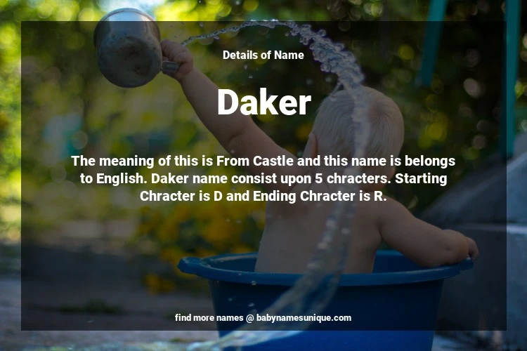 The name Daker is chosen by those who are willing to find Unique Boy Baby Names. The meaning of this is From Castle and this name is belongs to English Origin. Baby Name Daker consist upon 5 chracters. Starting alphabet is D and ending alphabet is R. This name is used primarily by parents who are considering unique baby names for Boy. The Zodiac Sign suitbale for this name are;