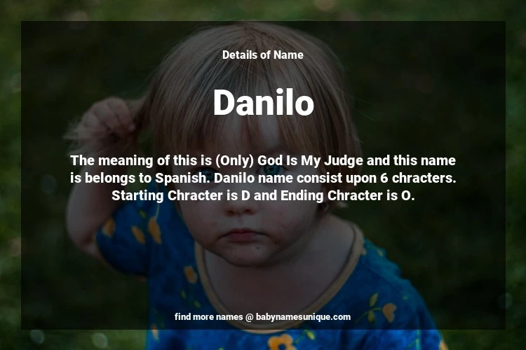 The name Danilo is chosen by those who are willing to find Unique Boy Baby Names. The meaning of this is (Only) God Is My Judge and this name is belongs to Spanish Origin. Baby Name Danilo consist upon 6 chracters. Starting alphabet is D and ending alphabet is O. This name is used primarily by parents who are considering unique baby names for Boy. The Zodiac Sign suitbale for this name are;