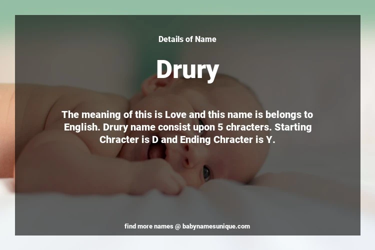 The name Drury is chosen by those who are willing to find Unique Transgenders Baby Names. The meaning of this is Love and this name is belongs to English Origin. Baby Name Drury consist upon 5 chracters. Starting alphabet is D and ending alphabet is Y. This name is used primarily by parents who are considering unique baby names for Transgenders. The Zodiac Sign suitbale for this name are;