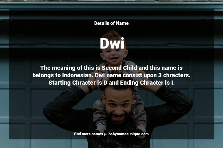 The name Dwi is chosen by those who are willing to find Unique Transgenders Baby Names. The meaning of this is Second Child and this name is belongs to Indonesian Origin. Baby Name Dwi consist upon 3 chracters. Starting alphabet is D and ending alphabet is I. This name is used primarily by parents who are considering unique baby names for Transgenders. The Zodiac Sign suitbale for this name are;
