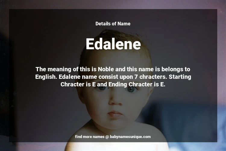 The name Edalene is chosen by those who are willing to find Unique Transgenders Baby Names. The meaning of this is Noble and this name is belongs to English Origin. Baby Name Edalene consist upon 7 chracters. Starting alphabet is E and ending alphabet is E. This name is used primarily by parents who are considering unique baby names for Transgenders. The Zodiac Sign suitbale for this name are;