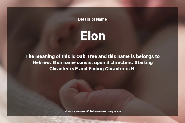 The name Elon is chosen by those who are willing to find Unique Transgenders Baby Names. The meaning of this is Oak Tree and this name is belongs to Hebrew Origin. Baby Name Elon consist upon 4 chracters. Starting alphabet is E and ending alphabet is N. This name is used primarily by parents who are considering unique baby names for Transgenders. The Zodiac Sign suitbale for this name are;