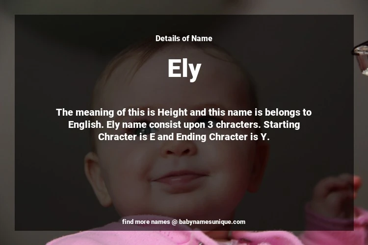 The name Ely is chosen by those who are willing to find Unique Boy Baby Names. The meaning of this is Height and this name is belongs to English Origin. Baby Name Ely consist upon 3 chracters. Starting alphabet is E and ending alphabet is Y. This name is used primarily by parents who are considering unique baby names for Boy. The Zodiac Sign suitbale for this name are;