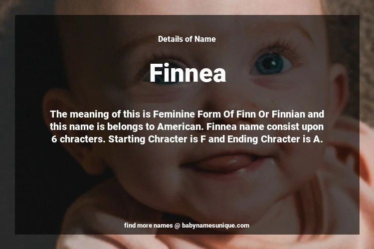 The name Finnea is chosen by those who are willing to find Unique Transgenders Baby Names. The meaning of this is Feminine Form Of Finn Or Finnian and this name is belongs to American Origin. Baby Name Finnea consist upon 6 chracters. Starting alphabet is F and ending alphabet is A. This name is used primarily by parents who are considering unique baby names for Transgenders. The Zodiac Sign suitbale for this name are;